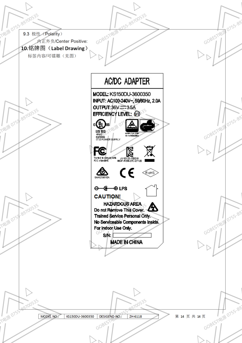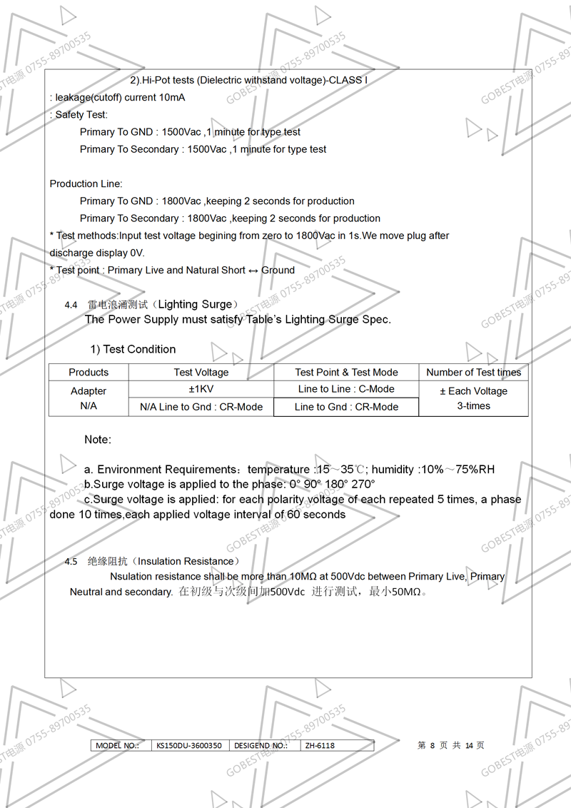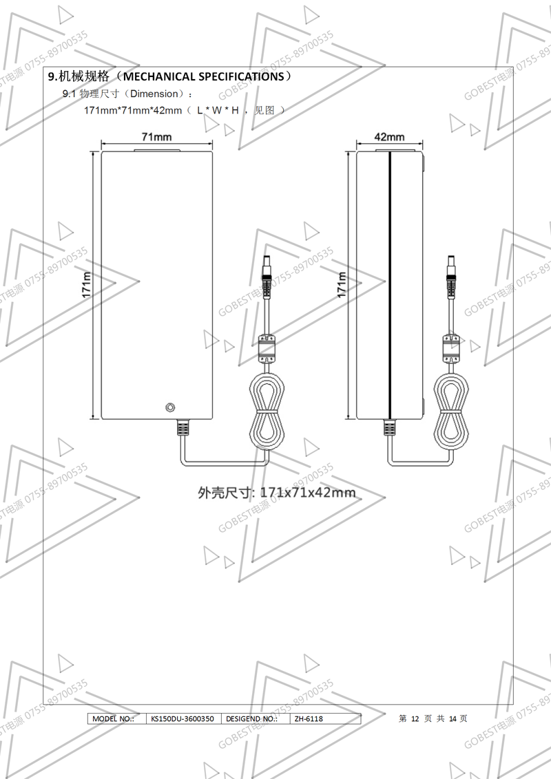 19V3.5A電源適配器規(guī)格書