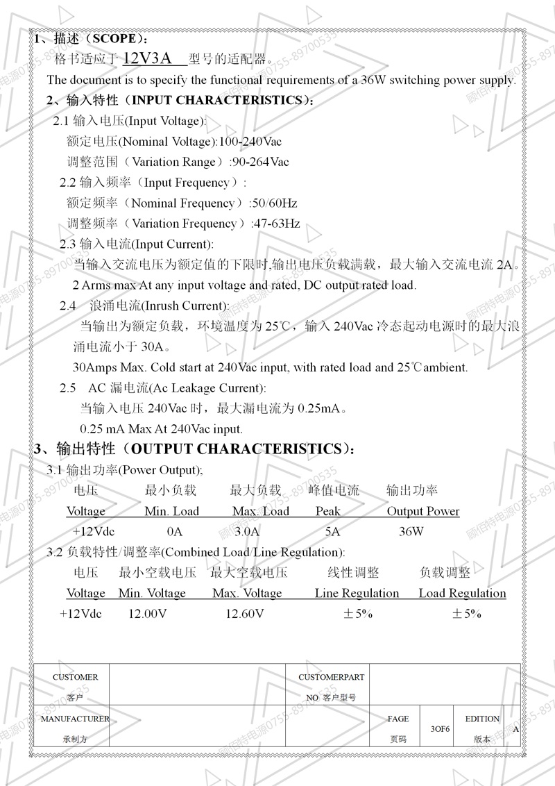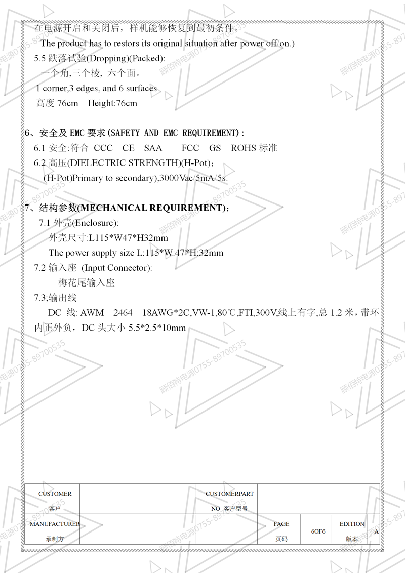 24V6A電源適配器帶PFC電路規格書(新模具)
