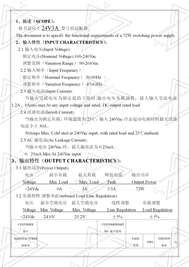24V6A電源適配器帶PFC電路規格書(新模具)