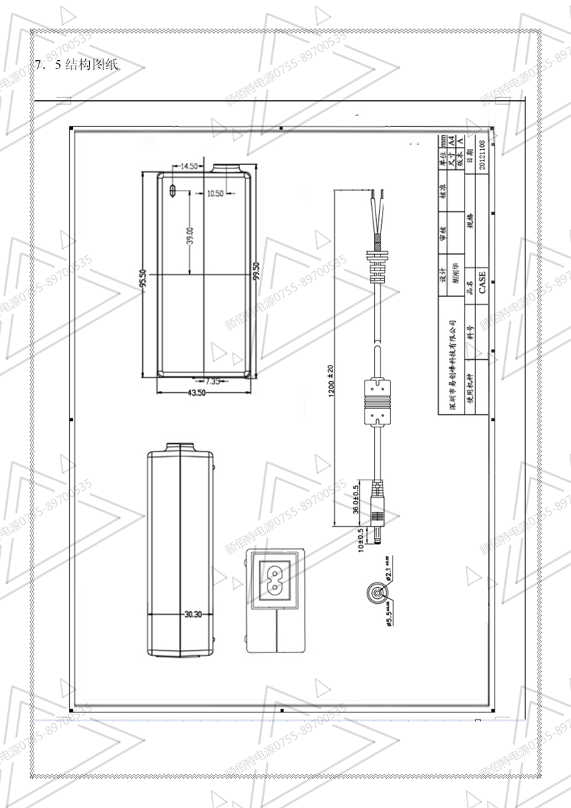 19V3.5A電源適配器規格書